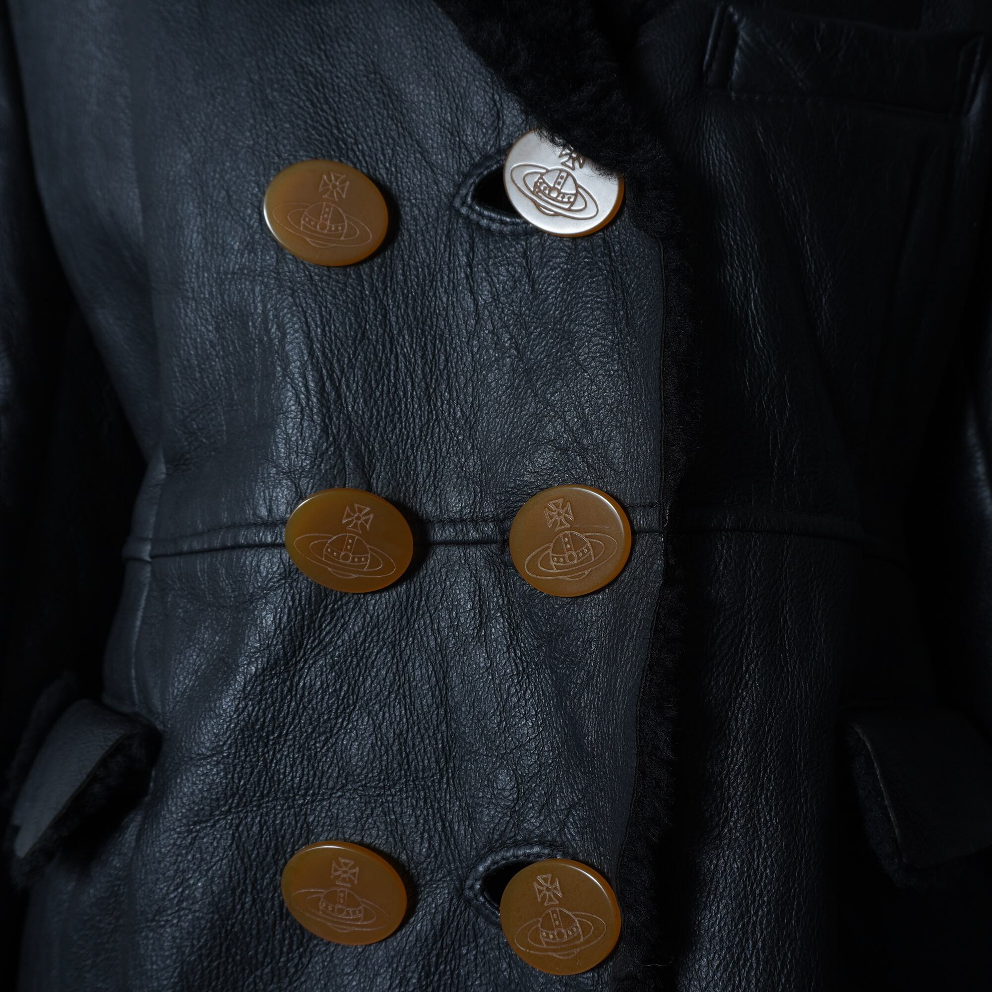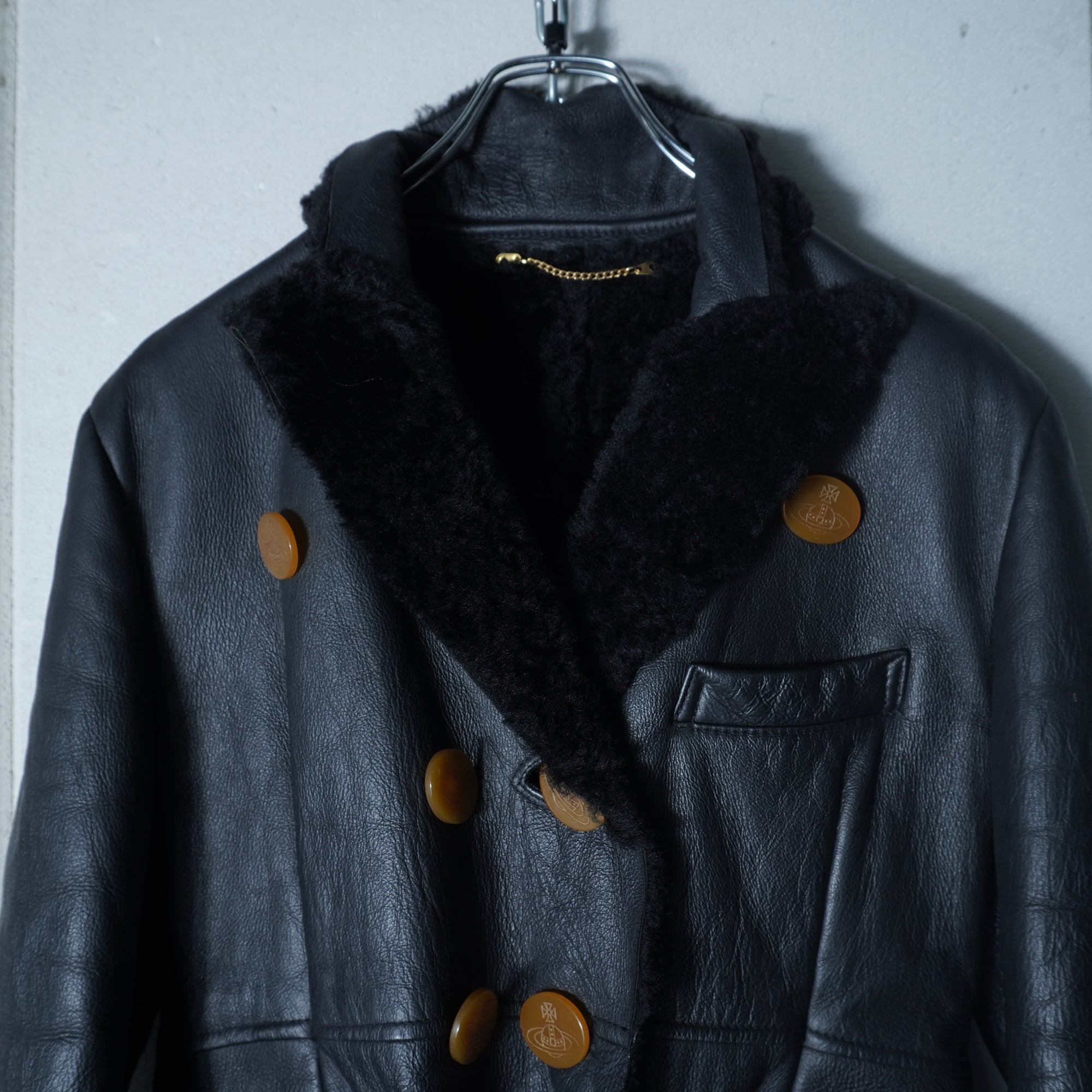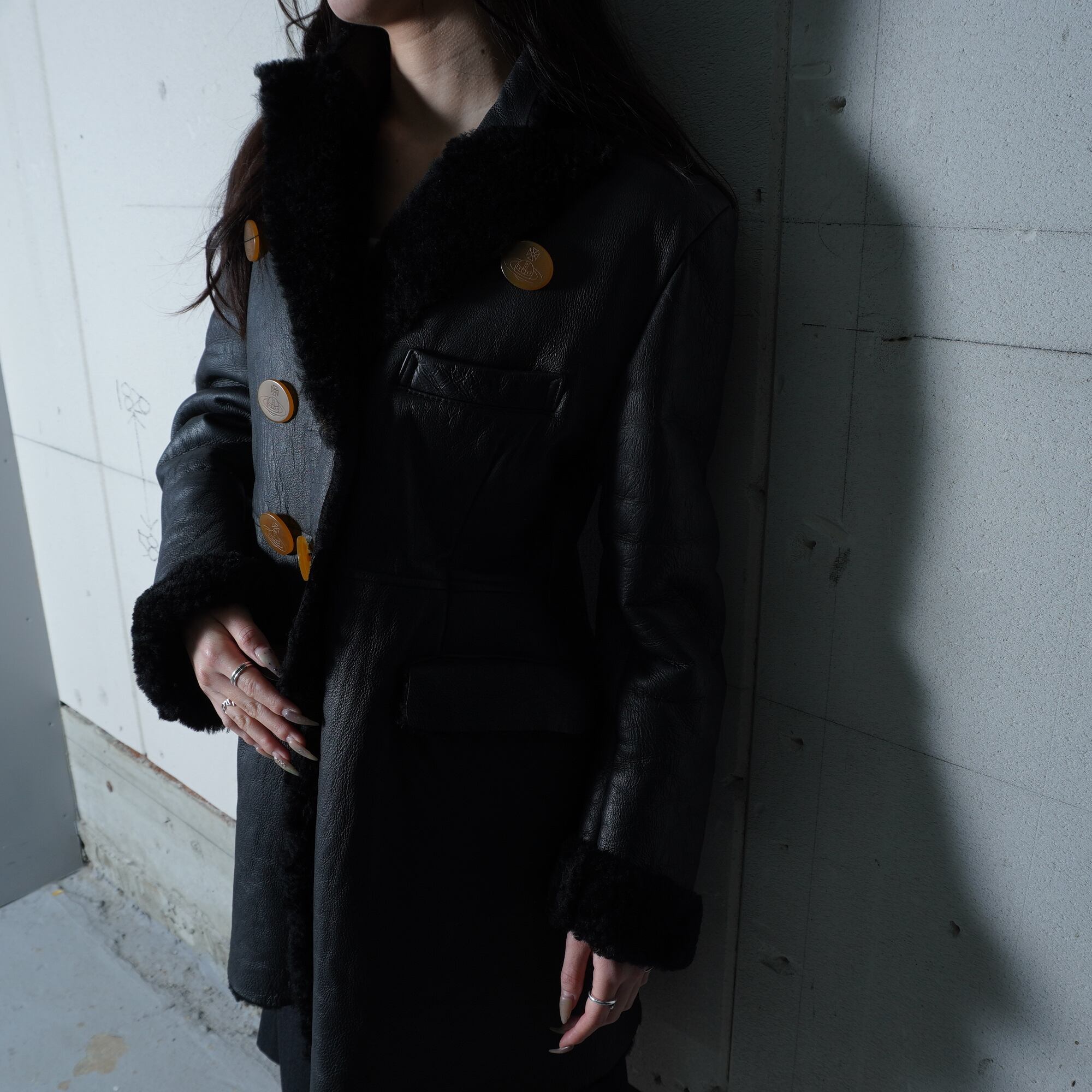 【Vivienne Westwood】ヴィヴィアンウエストウッド オーブロゴボタン ムートンレザーコート black