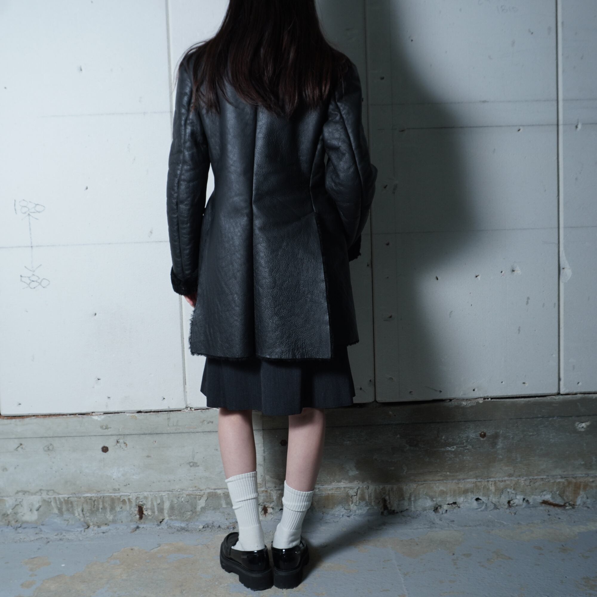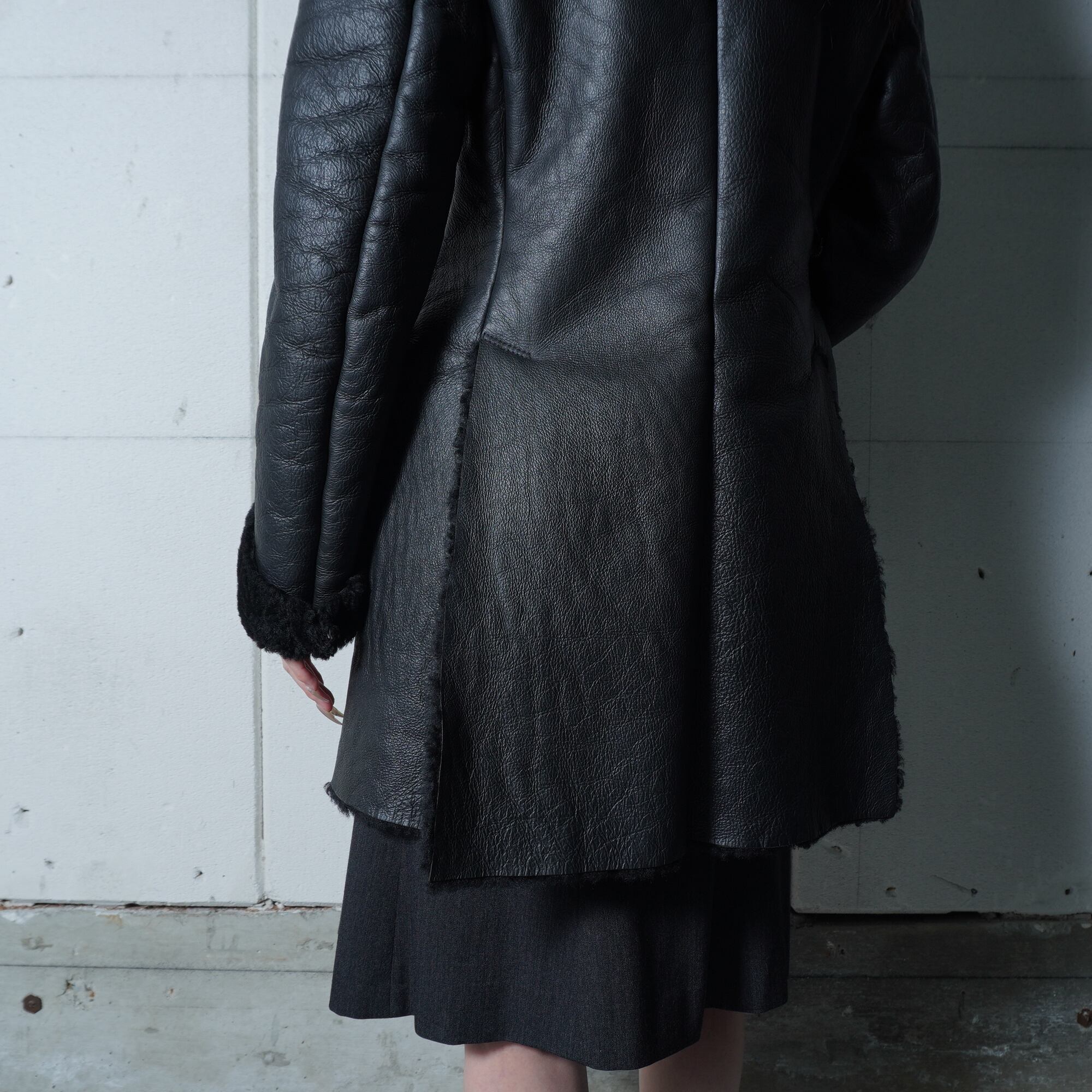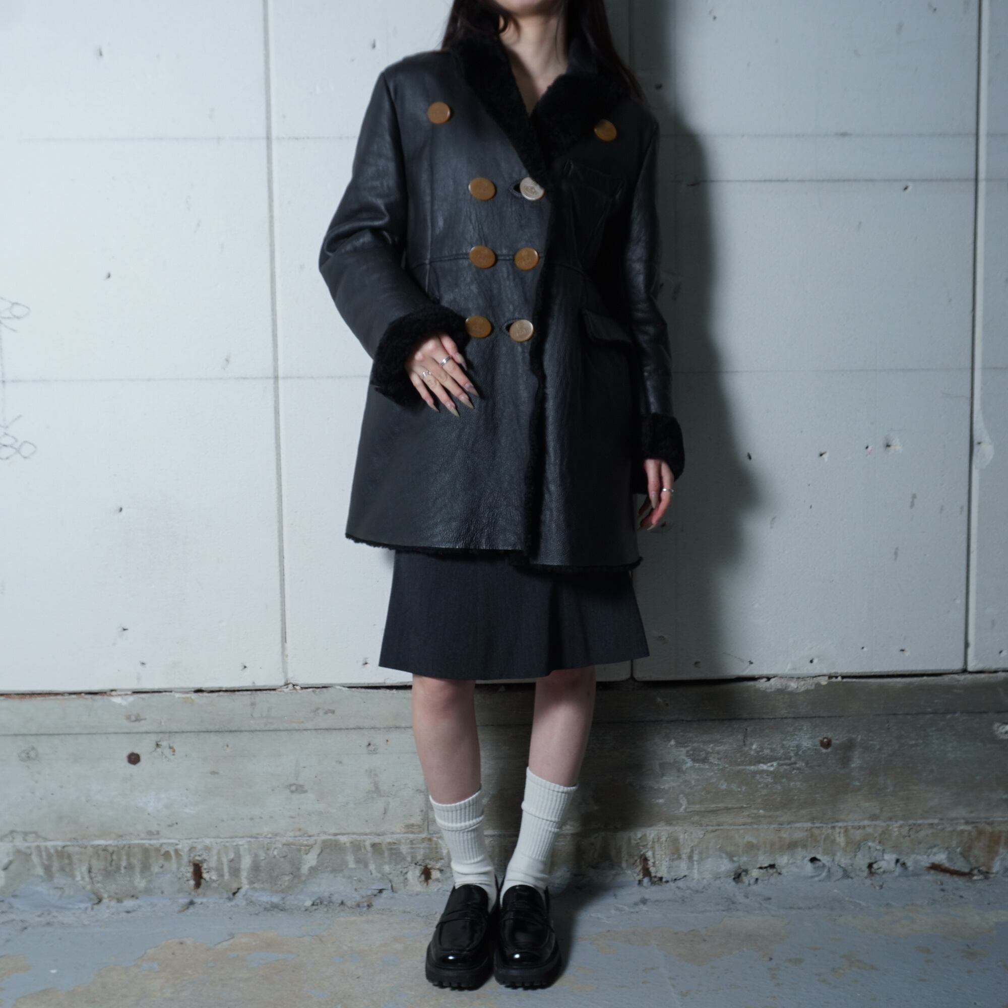 【Vivienne Westwood】ヴィヴィアンウエストウッド オーブロゴボタン ムートンレザーコート black
