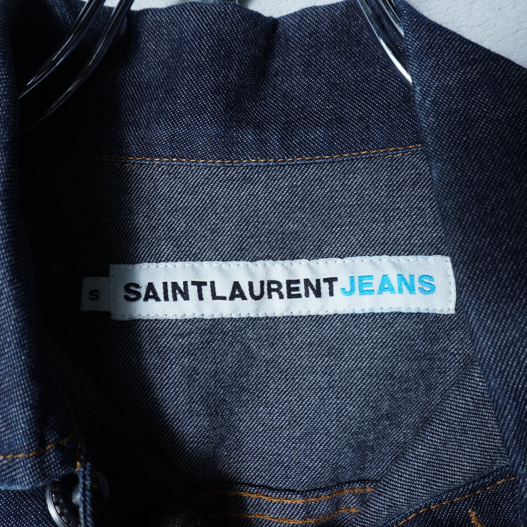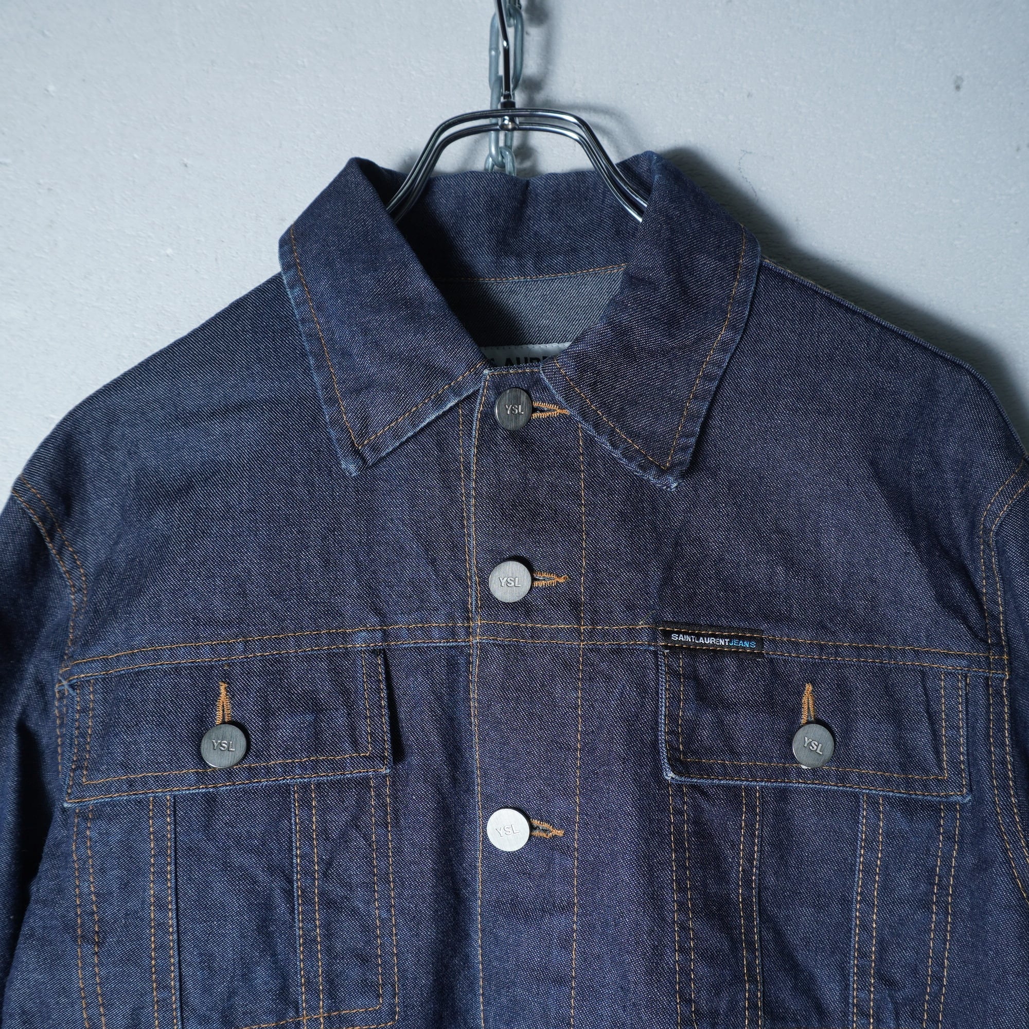 【Saint Lourent】サンローラン YSLロゴボタンショートデニムジャケット indigo