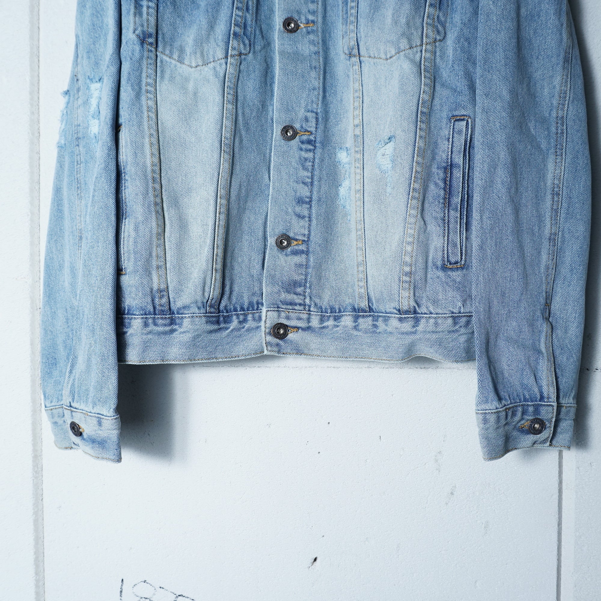 ・個性的なダメージ加工のデニムジャケット