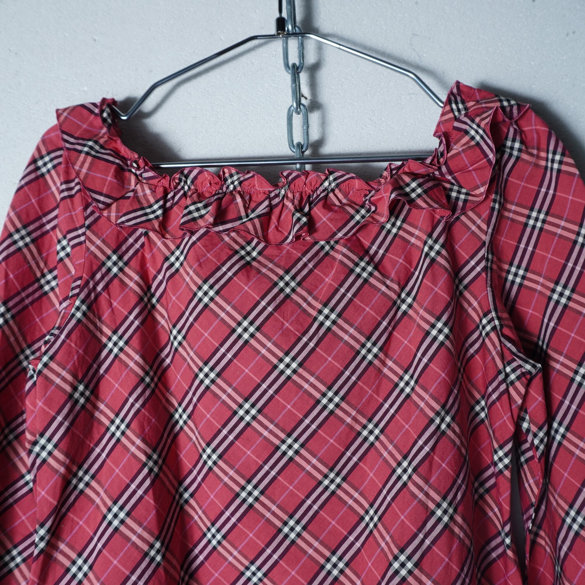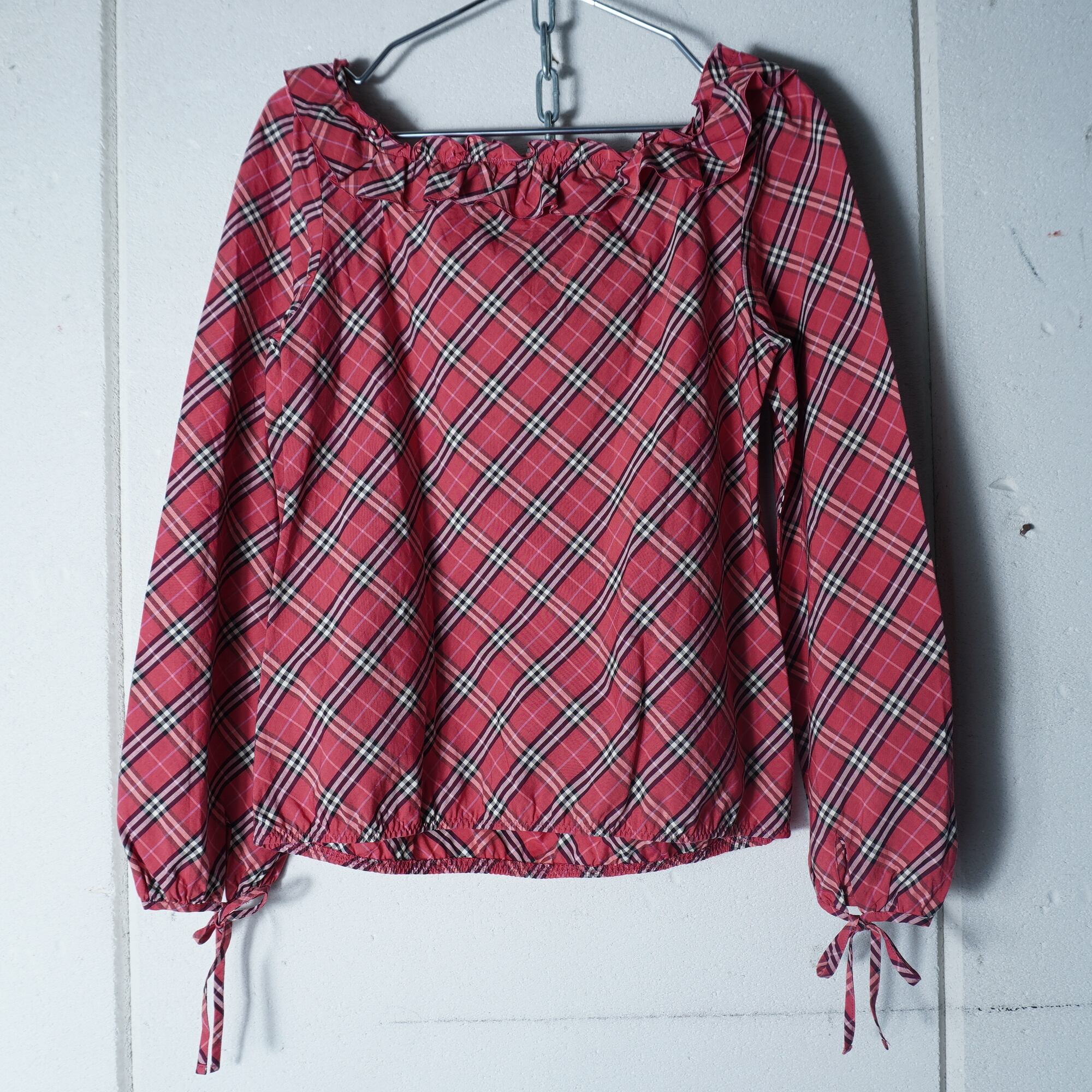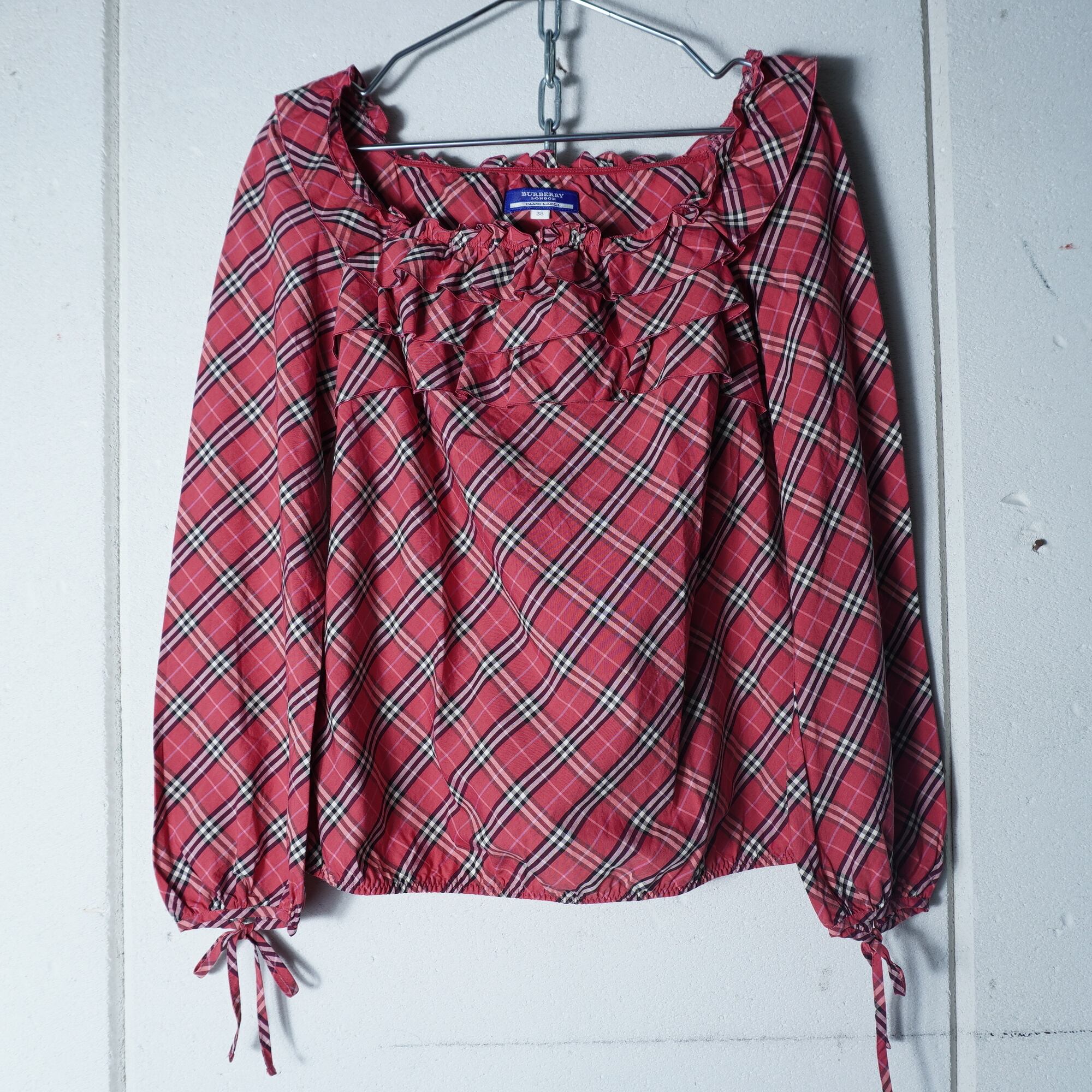 【BURBERRY】バーバリー フリルチェックブラウス pink