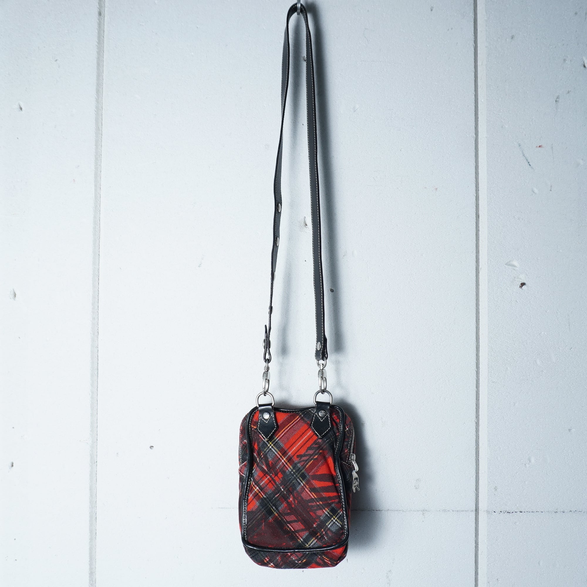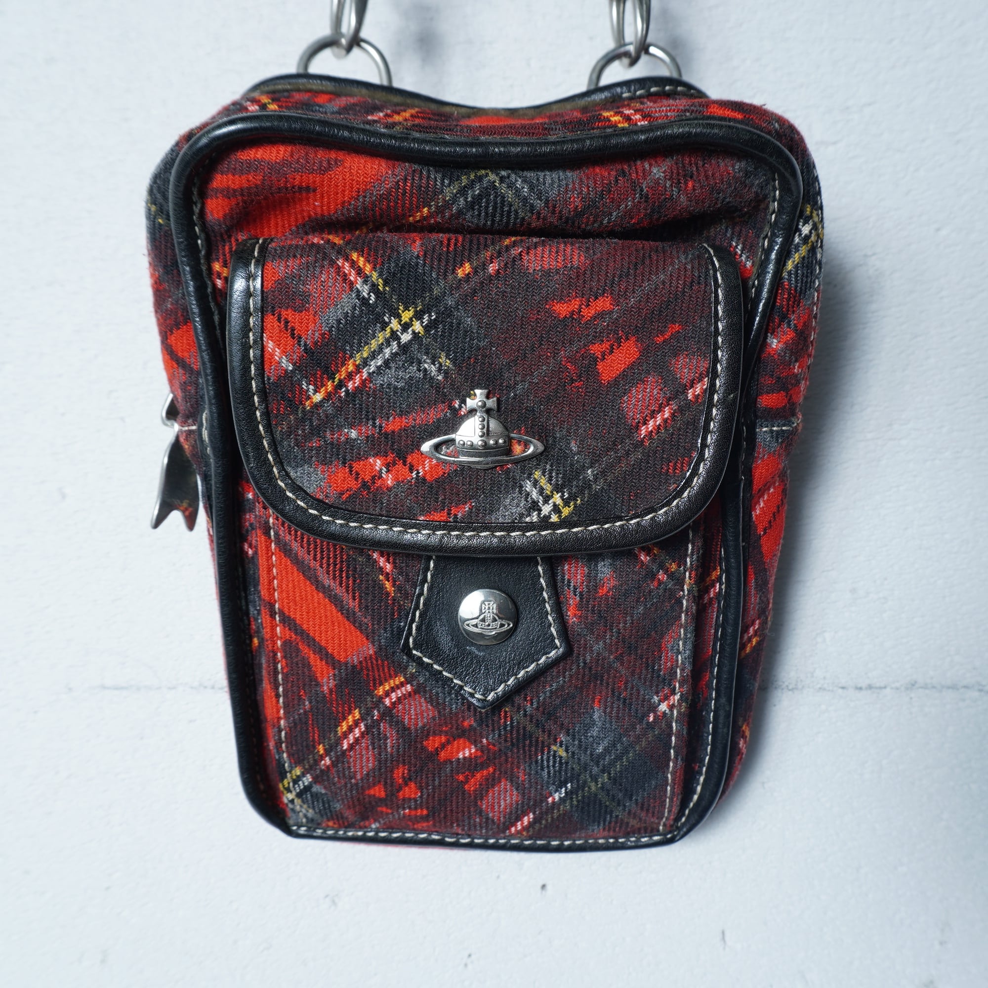 【Vivienne Westwood】ヴィヴィアンウエストウッド オーブロゴクロスチェックショルダーバッグ red & black & yellow