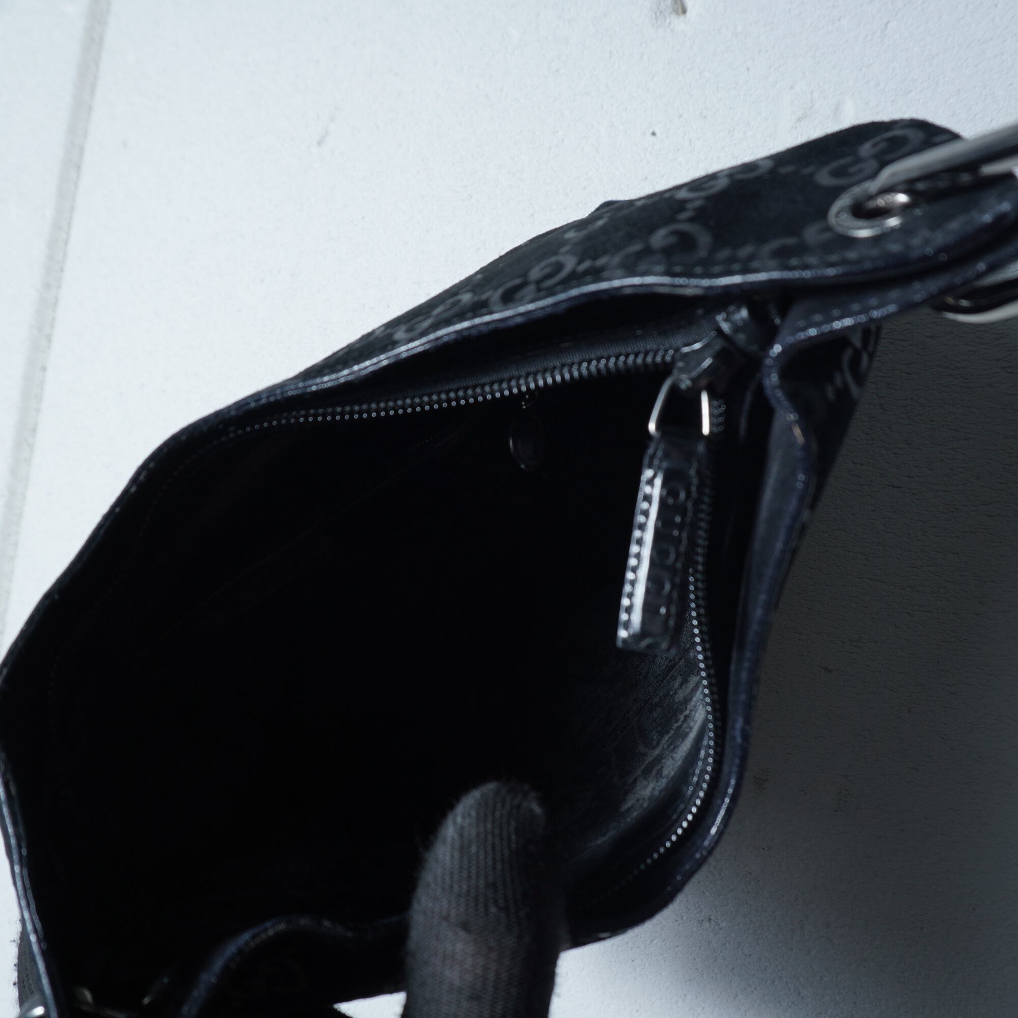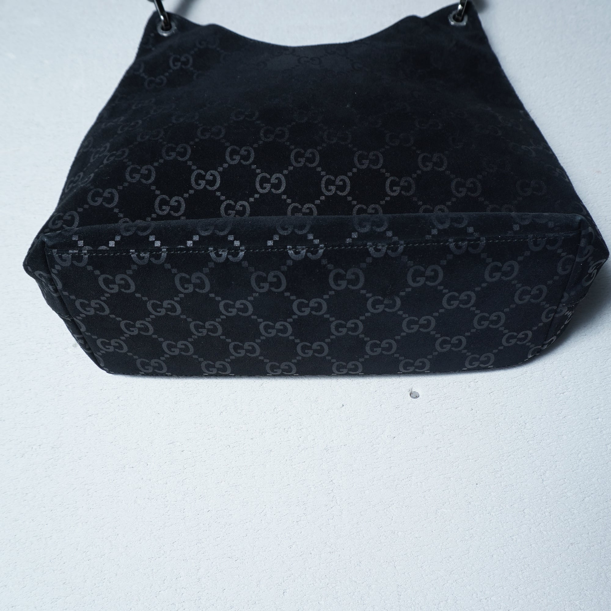【GUCCI】グッチ バンブーGGロゴスエードレザーハンドバッグ black
