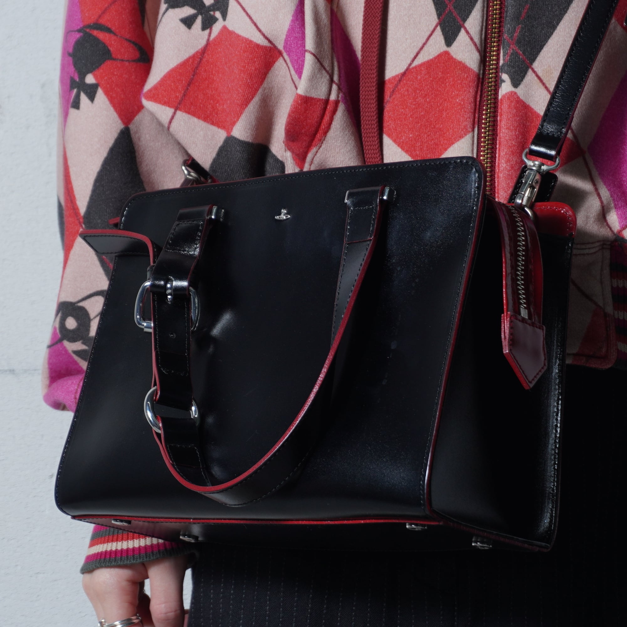 【Vivienne Westwood】ヴィヴィアンウエストウッド Simple tiny ORB 2WAY レザーショルダーバッグ black & red