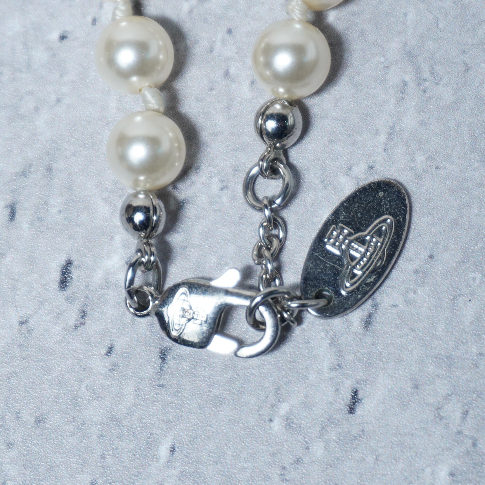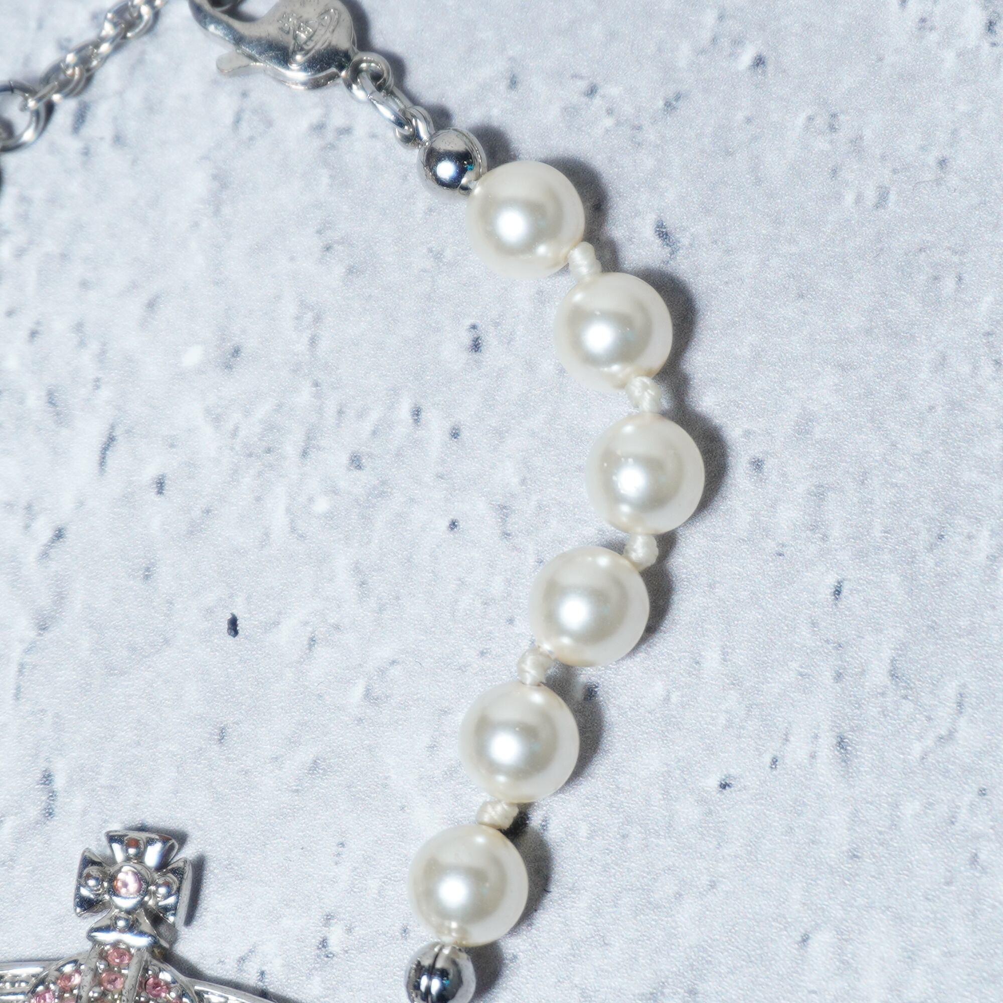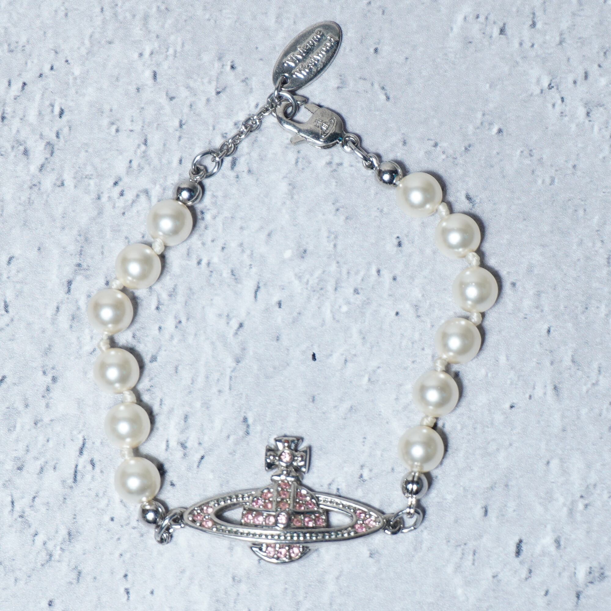 【Vivienne Westwood】ヴィヴィアンウエストウッド ミニバスレリーフ オーブロゴ・パールブレスレット 箱・袋付 pink&silver&white