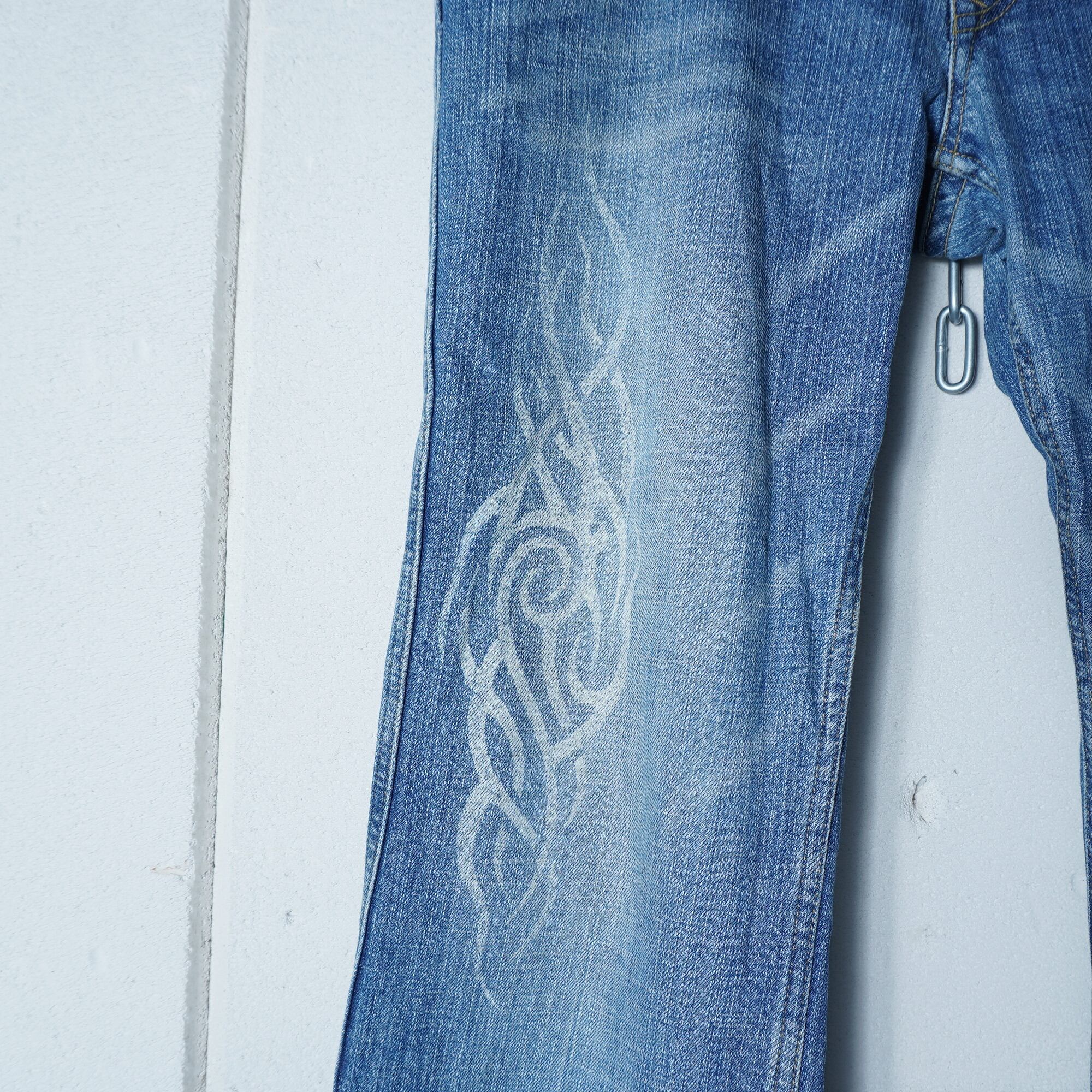 ・個性的なトライバルデザインのフレアデニム