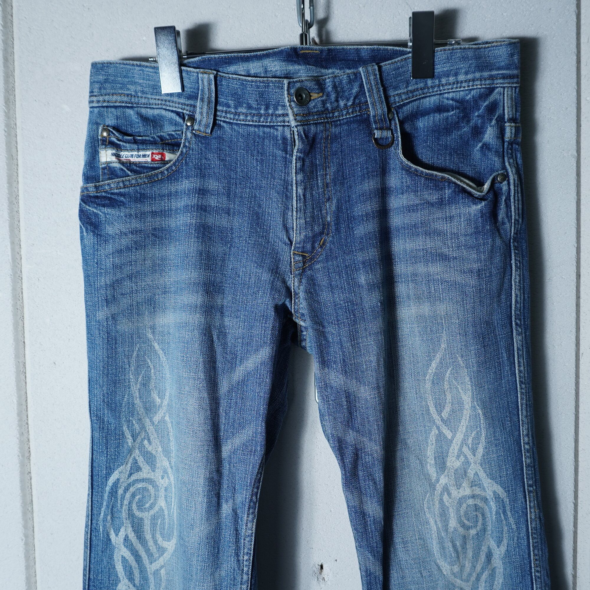 【 NICOLE CLUB】ニコルクラブ Y2K トライバルフレアデニム indigo
