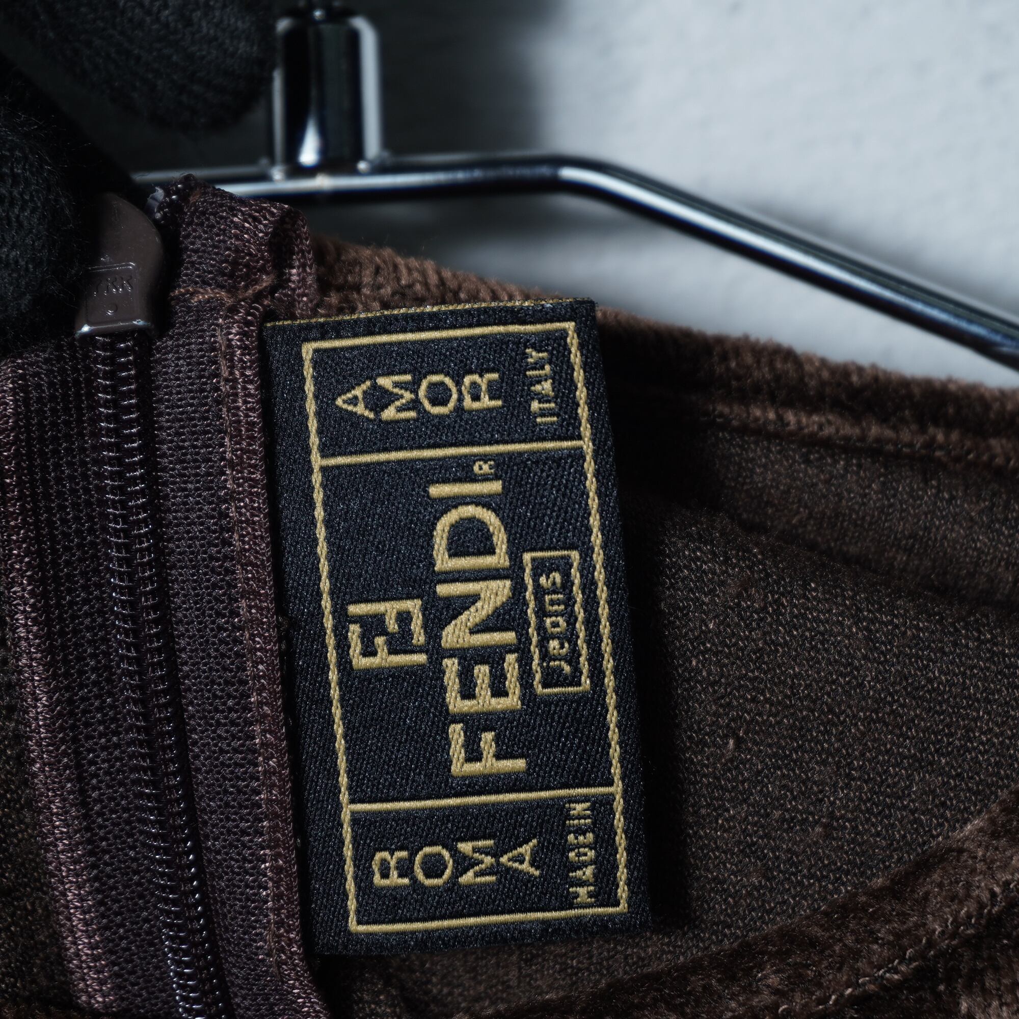 【FENDI】フェンディ トリプルロゴベロアロングTシャツ brown
