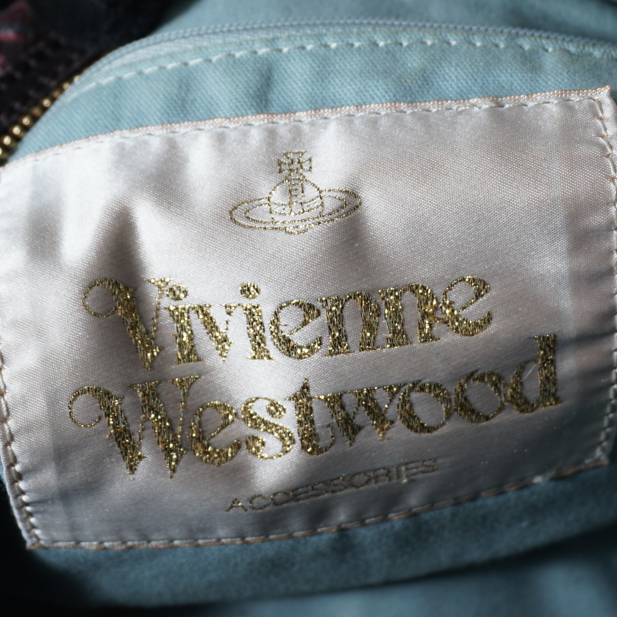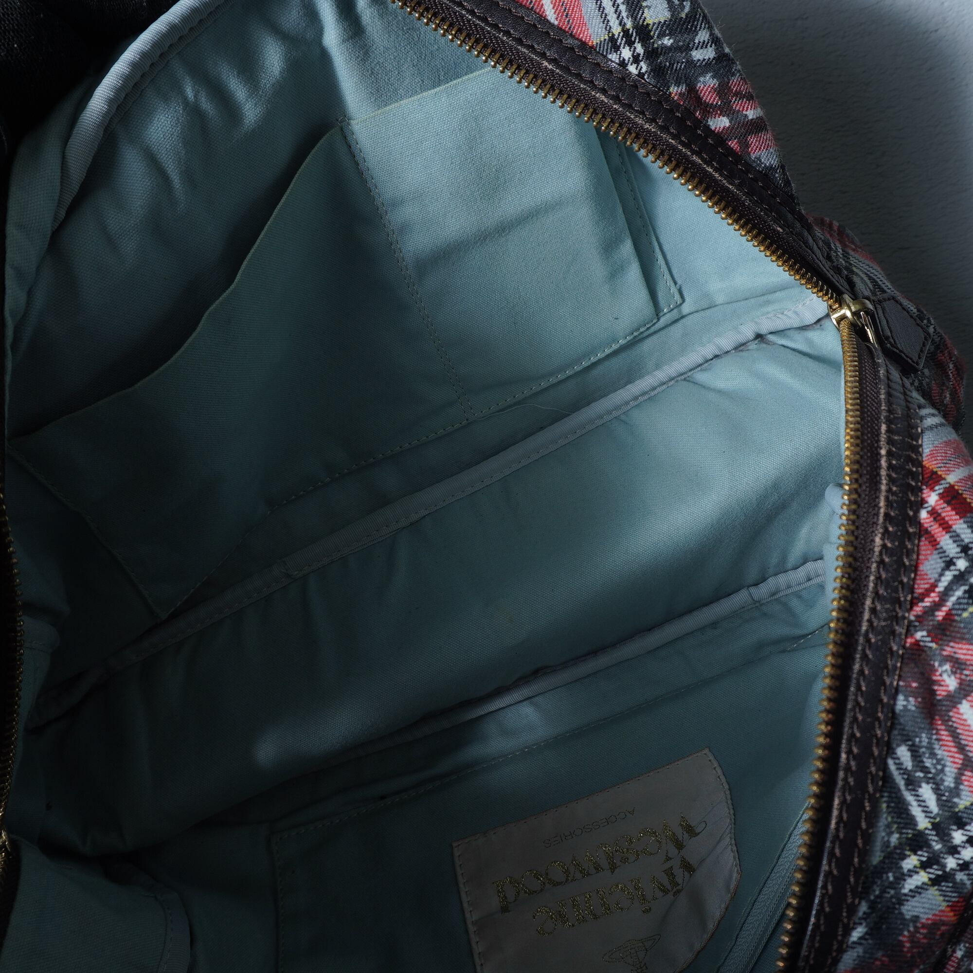 【Vivienne Westwood】ヴィヴィアンウエストウッド オーブロゴチェック柄レザー切替ハンドバッグ gray & red & black