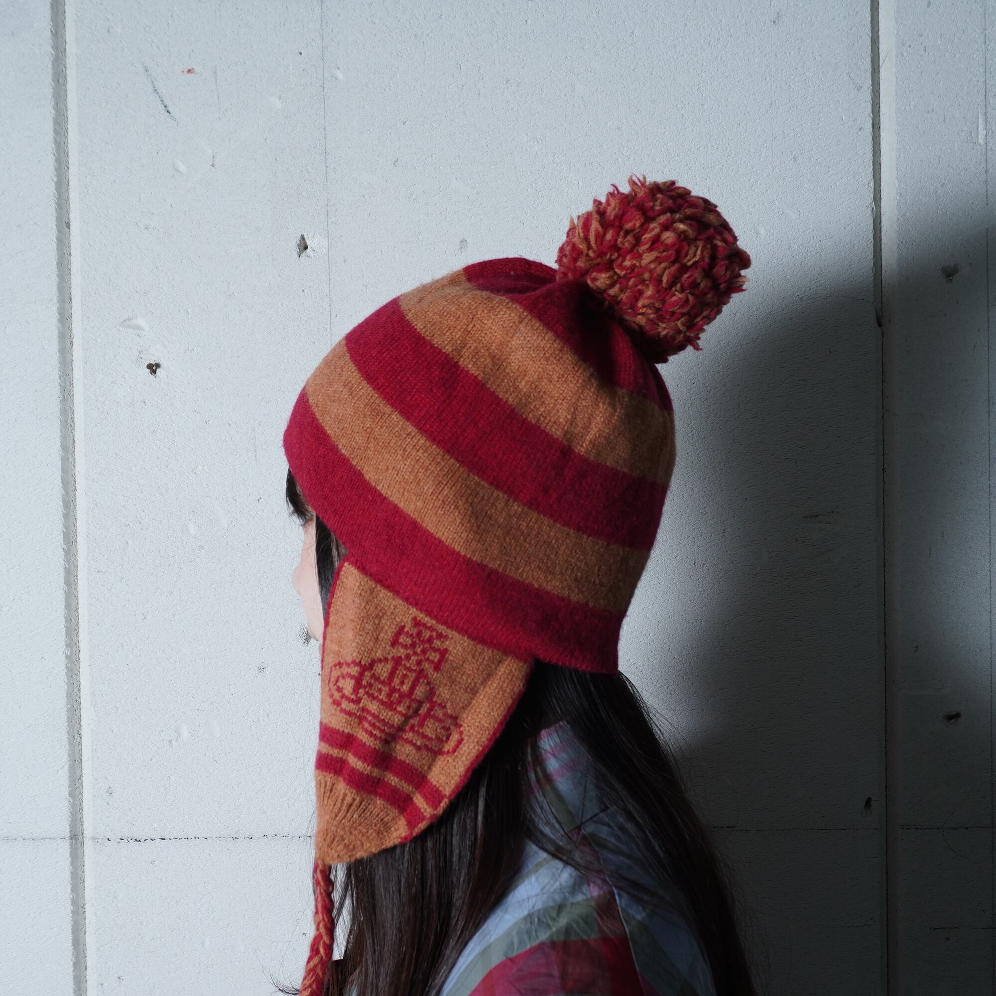 【Vivienne Westwood】ヴィヴィアンウエストウッド オーブロゴ WOOL100%ビーニー帽 bordeaux